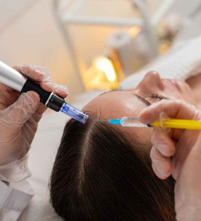 Transform your hair with Mesotherapy Hair treatment, a cutting-edge solution for hair thinning and loss. This non-invasive procedure delivers a potent blend of vitamins, minerals, and amino acids directly to the hair follicles, stimulating growth and improving hair strength and density. Mesotherapy Hair targets the root of hair problems, promoting healthier, fuller hair with noticeable results. Ideal for both men and women, this treatment helps to rejuvenate your scalp and restore your hair's natural vitality.